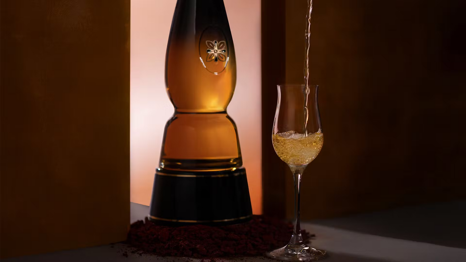 디캔터는 어둠이 빛을 끌어안는 시간의 경계를 형상화했습니다. 데킬라 자체가 석양이라면, 디캔터는 석양을 품고 감싸는 시간과 풍광이죠. 아홉 색의 세라믹과 유리, 24K 도금을 결합하는 세공 기술 6년의 산고 끝에 개발되었고, 골드 디캔터를 통해 예술의 영역에 이르게 되었습니다.